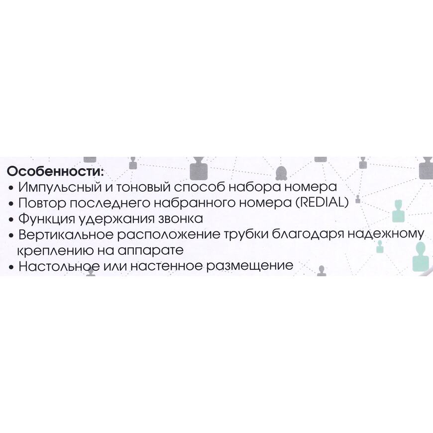 | Описание | Отличный телефонный аппарат для использования как дома, так и в небольшом офисе. Телефон отличается надежностью и доступностью по цене, его крупные кнопки обеспечивают удобный набор номера. |