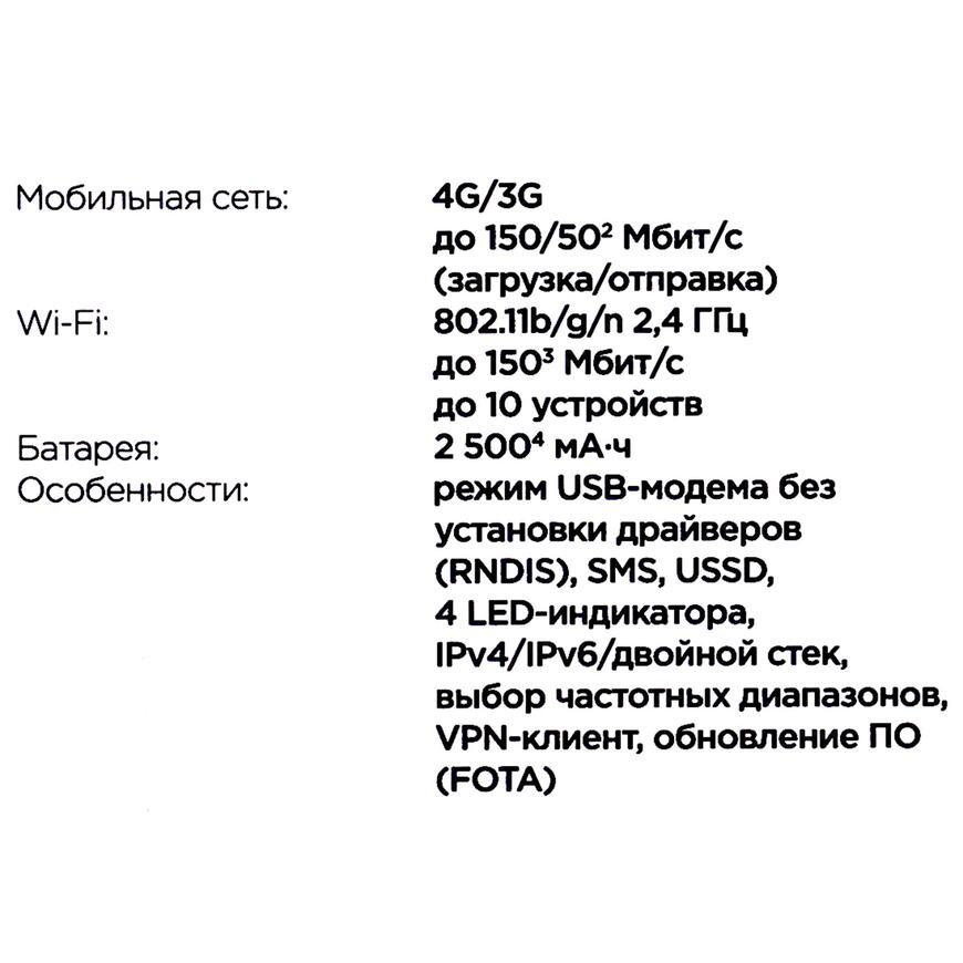 | Индикаторы | 4G, Power, SMS, WLAN |