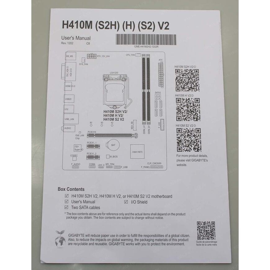 | Мат плата | GIGABYTE H410M S2H V2 (RTL) LGA1200 <H470> PCI-E Dsub+DVI+HDMI GbLAN SATA MicroATX 2DDR4 |