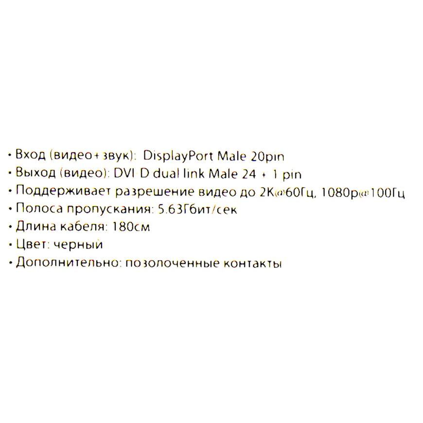 Тип оборудования Кабель DisplayPort -> DVI-D