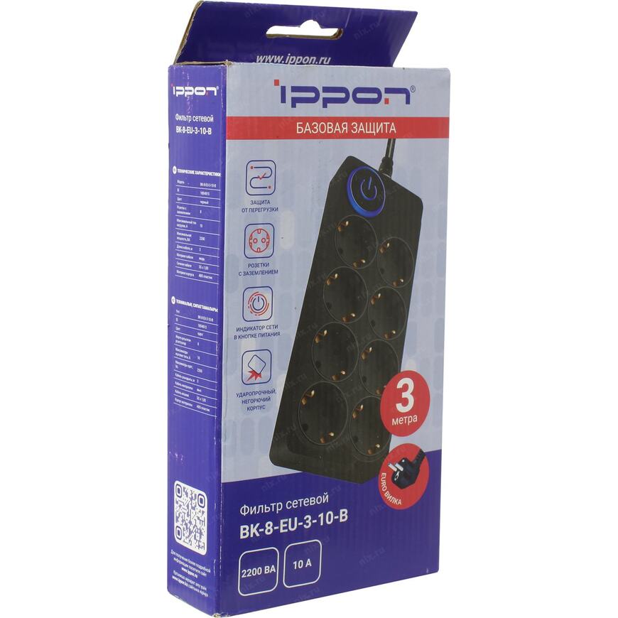 Сетевые фильтры Ippon серии BK рекомендуются для компьютеров, цифровых устройств и любой бытовой техники, включая телевизоры и видеотехнику. Они предлагают базовый уровень защиты от сетевых перенапряжений и короткого замыкания при подключенной нагрузке.