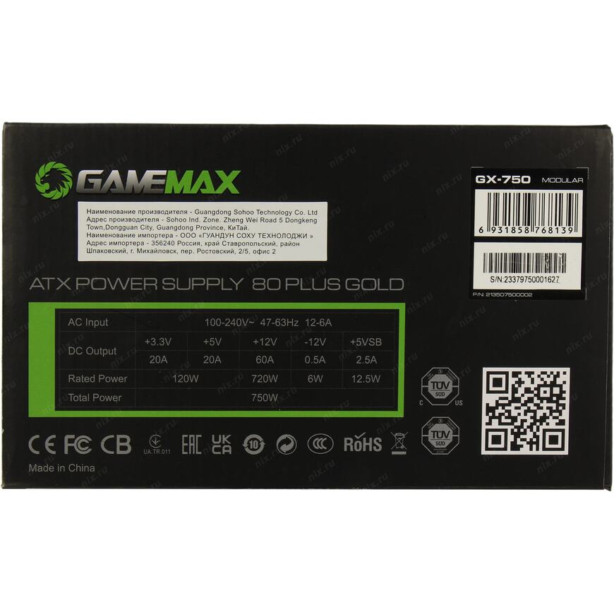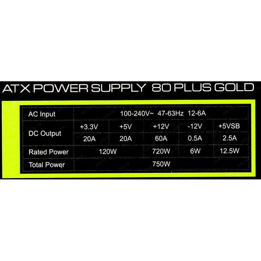 +3.3V - 20A, +5V - 20A, +12V - 60A, +5VSB - 2.5A, -12V - 0.5A