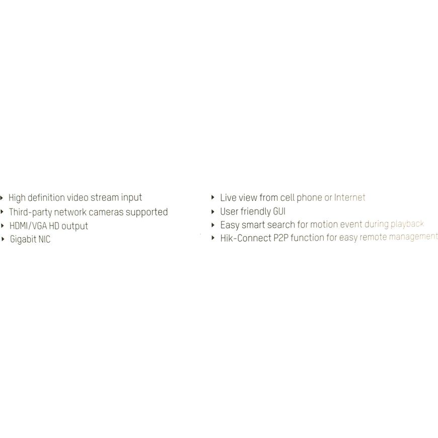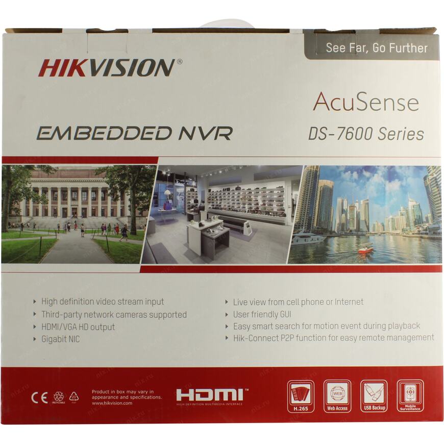 | Прочее | Режимы записи: Постоянно, по расписанию, по детектору движения Два отсека 3.5" SATA для накопителей объемом до 10 ТБ USB порт для подключения внешних накопителей (экспорт записанного видео) Разрешение видео выходов: VGA до 1920x1080, HDMI - до 3840x2160 Мышь для управления GUI |