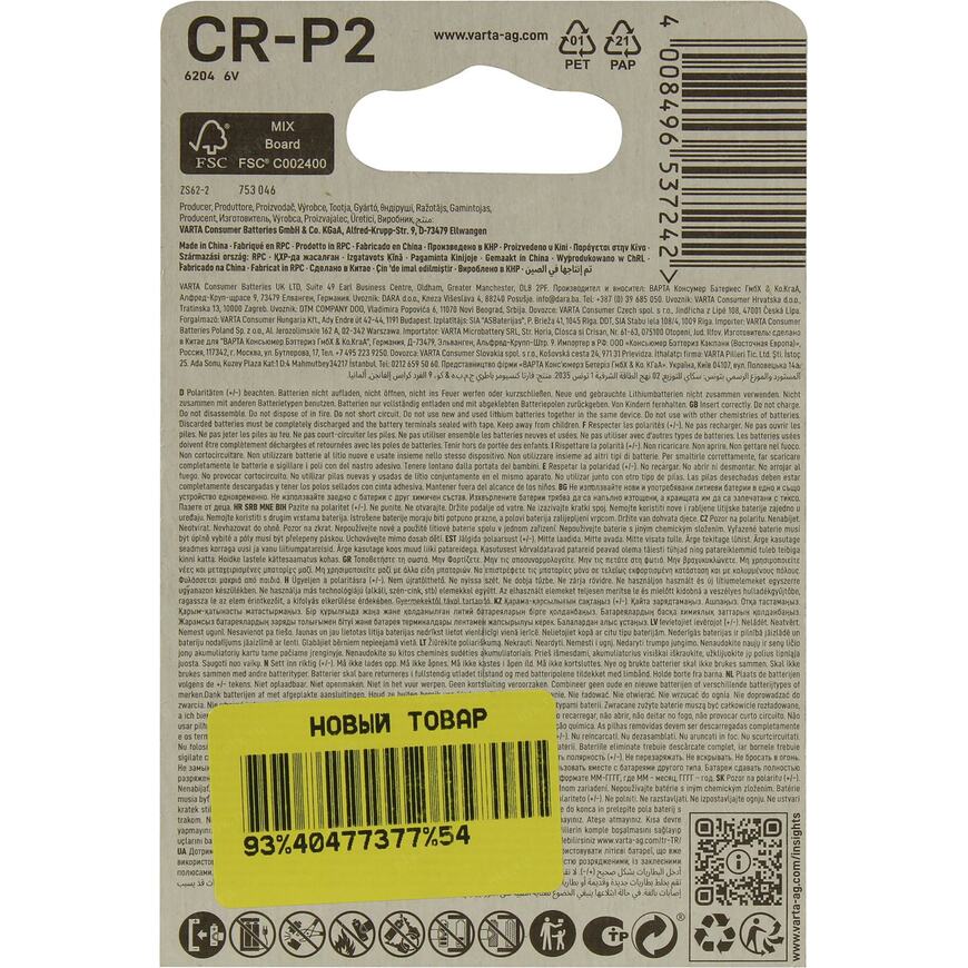 Батарейки C VARTA 6204 CR-P2 1 шт.