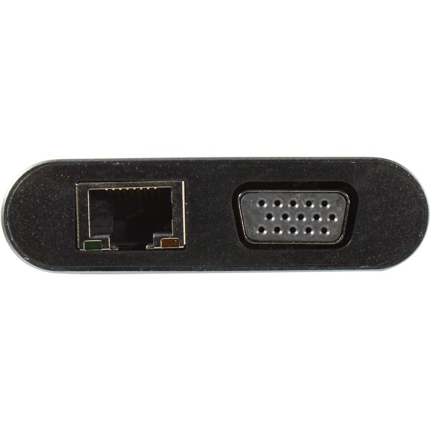 Многопортовый цифровой AV-адаптер USB-C оснащен видеовыходом HDMI и VGA, а также тремя USB 3.0 Type A портами, USB Type C разъемом для зарядки подключенного ноутбука, гигабитной сетевой картой, аудио-выходом и слотами для карт памяти типа SD и microSD. При использовании данного адаптера появляется возможность подключать монитор или телевизор по HDMI или VGA, использовать USB-накопители, подключать устройство к сети патч-кордом, одновременно заряжать ноутбук (до 100 Вт по USB PD2.0) и пользоваться картами памяти (до 128 Гб). Переходник с USB Type C на HDMI/VGA предназначен для устройств с разъёмом USB Type C, в которых интегрирован интерфейс DisplayPort, например, Apple MacBook 12" или Google Chromebook Pixel 2, а также некоторые материнские платы и ноутбуки с универсальным портом USB Type C/DisplayPort alternate mode.