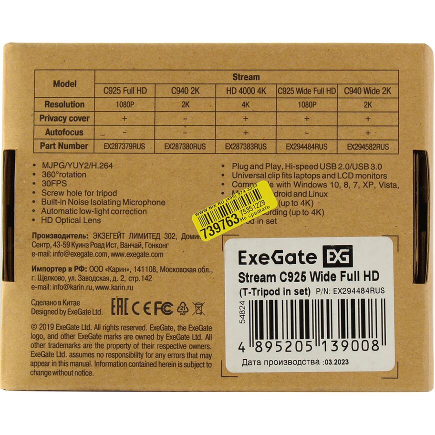 | Описание | Веб-камера ExeGate Stream C925 Wide FullHD T-Tripod предназначена для удовлетворения потребностей самых взыскательных пользователей, и прежде всего, для профессионального использования при проведении видеоконференций и видеозвонков с предельными требованиями к качеству изображения. |