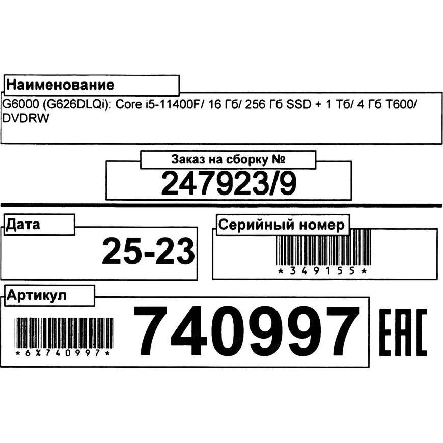 | Процессор компьютера | Intel Core i5 11400F (2.6 - 4.4 ГГц, 6 ядер, 65 Вт) |