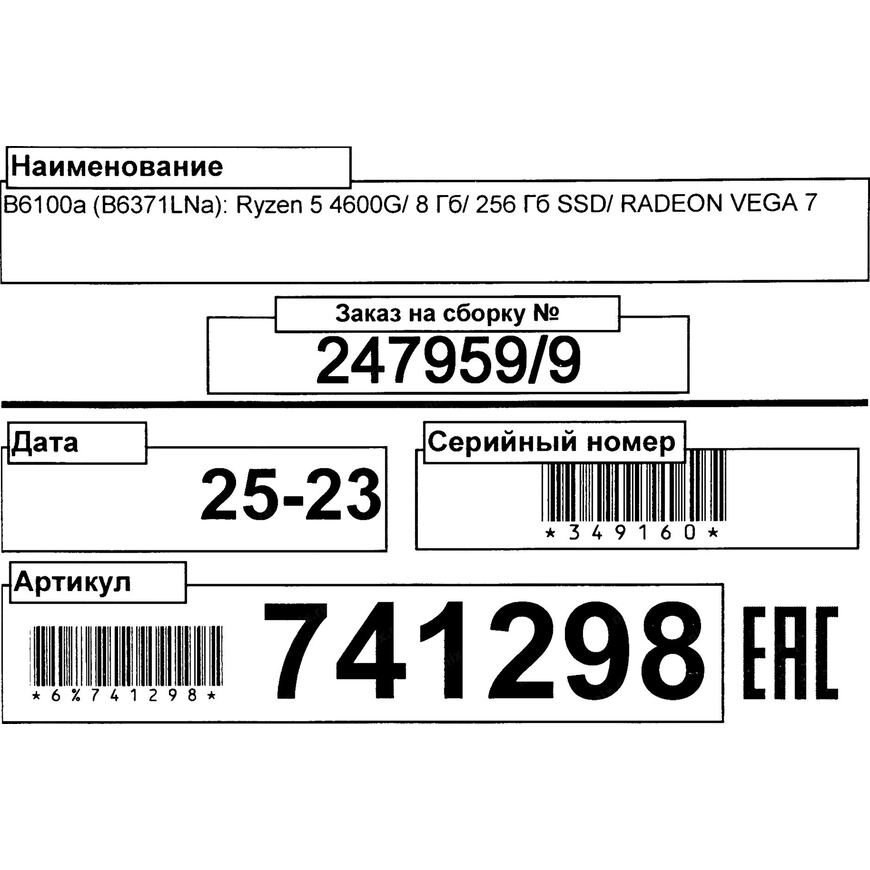 | Процессор компьютера | AMD Ryzen 5 4600G (3.7 - 4.2 ГГц, 6 ядер, 65 Вт) |