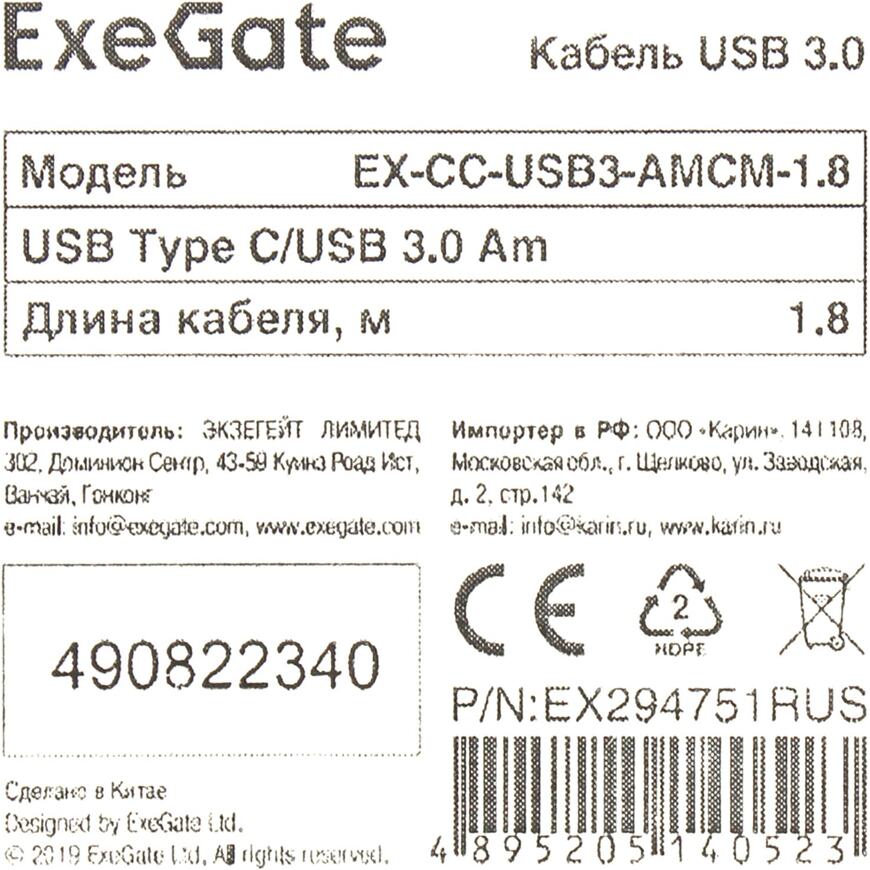 Exegate EX-CC-USB3-AMCM-1.8 Черный 1.8 м. Кабель