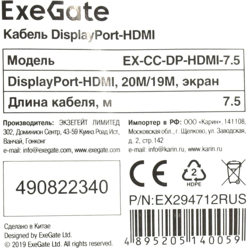 Кабель Exegate EX-CC-DP-HDMI-7.5 7.5 м.