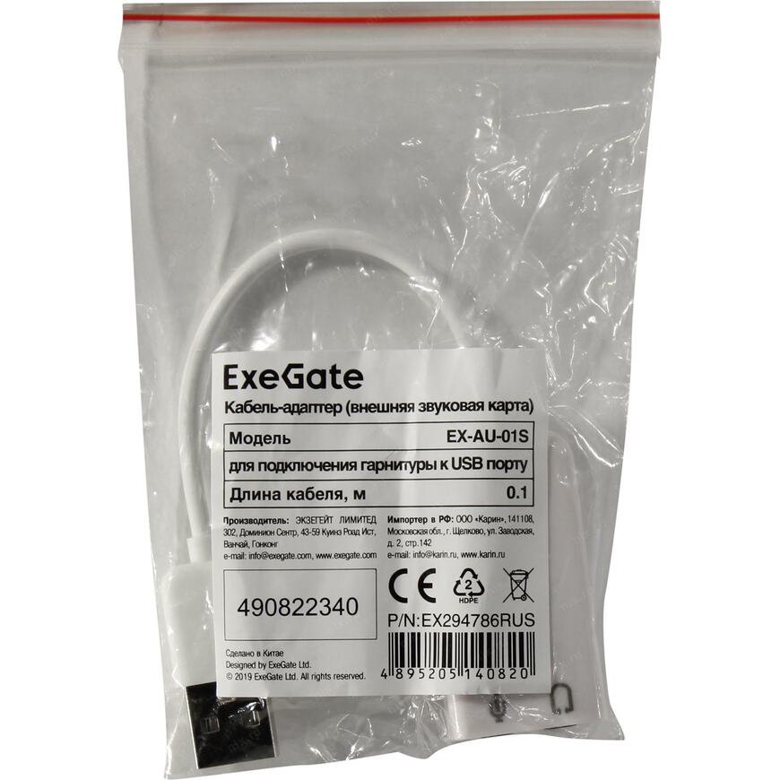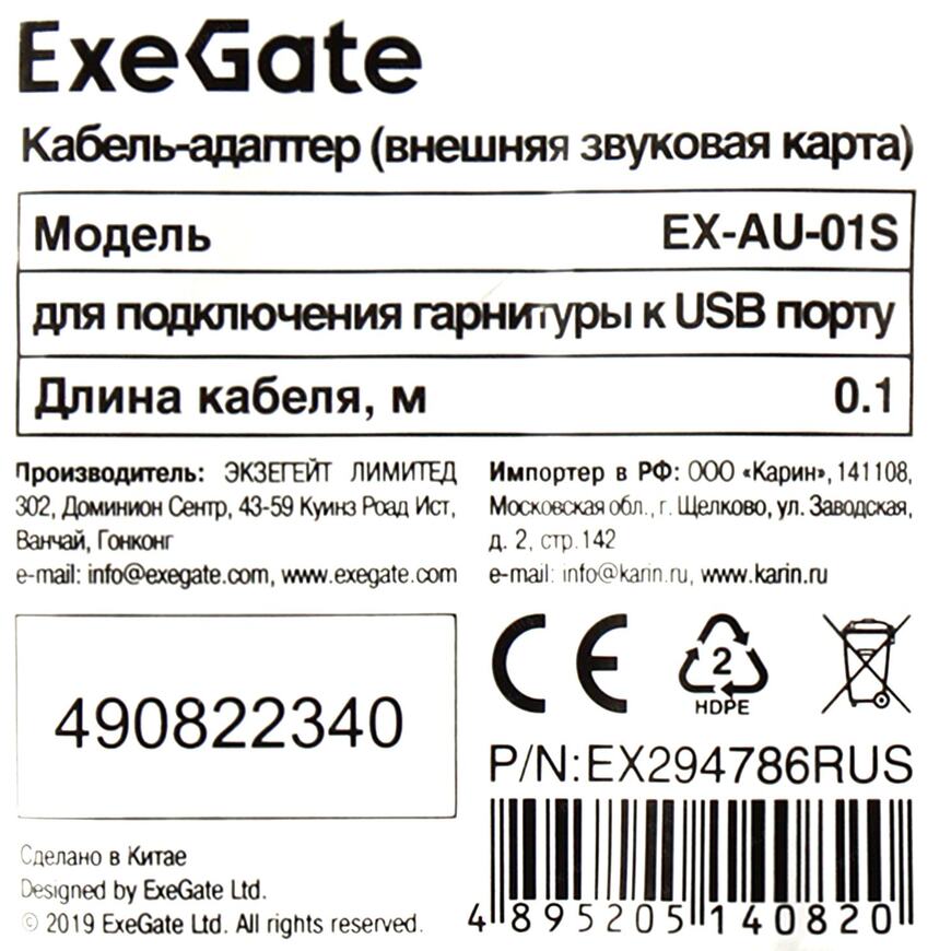 Портативная внешняя звуковая карта USB 2.0 Exegate EX-AU-01S