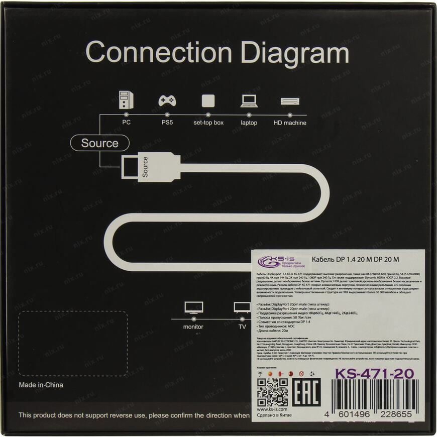 | Тип оборудования | Оптический активный кабель DisplayPort <-> DisplayPort |