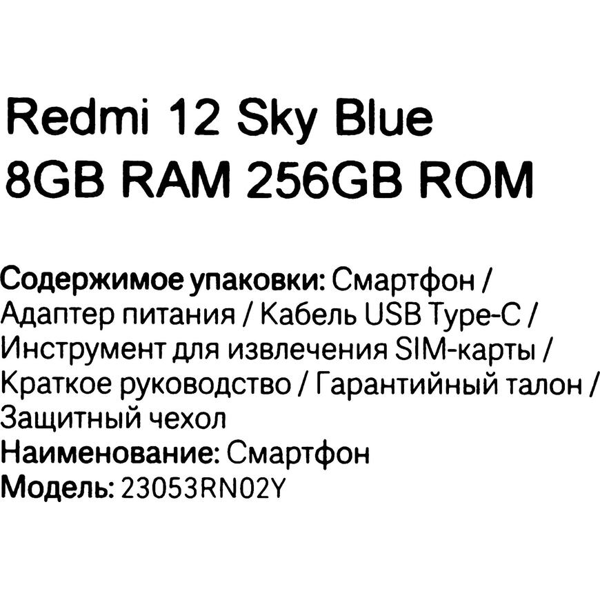 | Модель | Redmi 12 NFC Sky Blue |