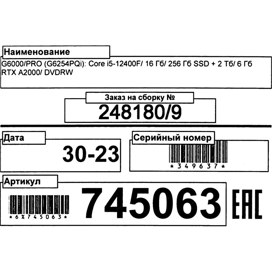 | Процессор компьютера | Intel Core i5 12400F (2.5 - 4.4 ГГц, 6 ядер, 117 Вт) |