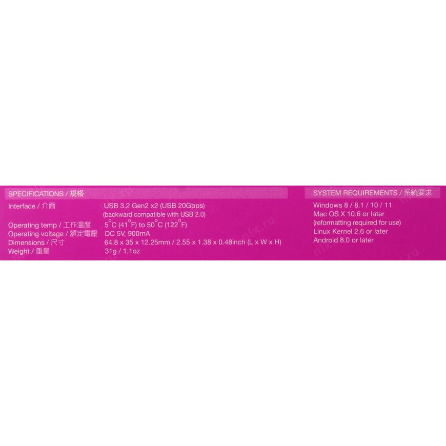 65 x 13 x 35 мм (USB 3.1)