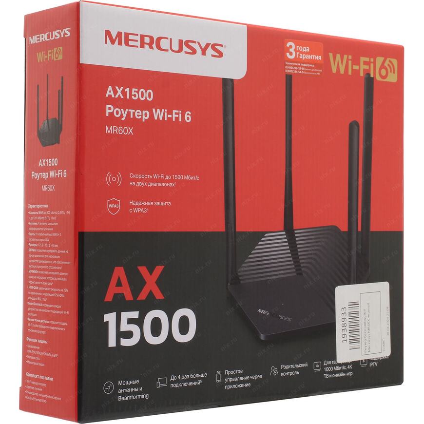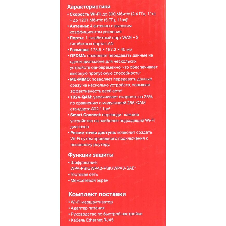 Совокупная скорость до 1,5 Гбит/с - до 300 Мбит/с на диапазоне 2,4 ГГц, до 1201 Мбит/с на диапазоне 5 ГГц
