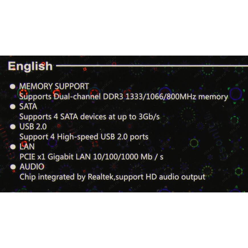 | Видео M/B | Используется встроенное в процессор. ПРЕДУПРЕЖДЕНИЕ При использовании процессоров без встроенного видео, видеовыходы на плате не работают. |