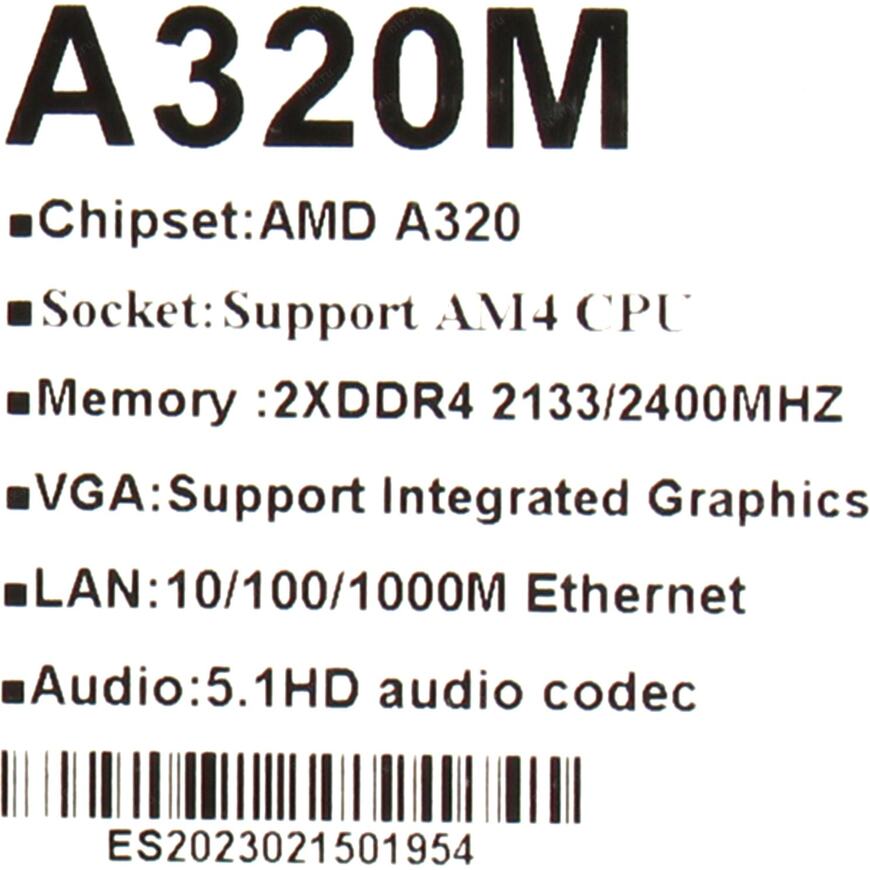 | Чипсет мат. Платы | AMD A320 |