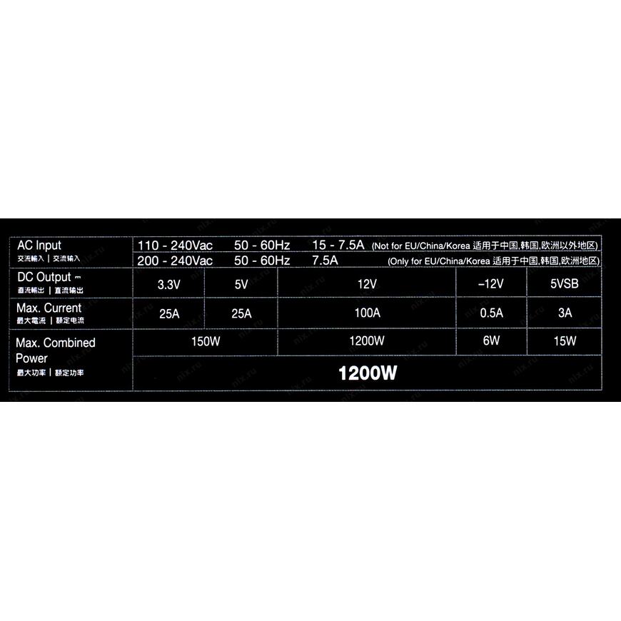 | Мощность блока питания | 1200 Вт |