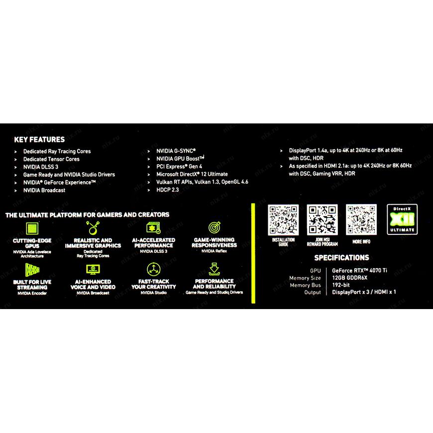 | Модель | RTX 4070 Ti GAMING SLIM 12G |