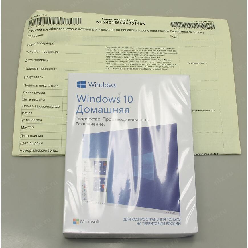 | Программное обеспечение | Microsoft Windows 10 Home 32/64-bit Рус. USB (BOX) <HAJ-00073>