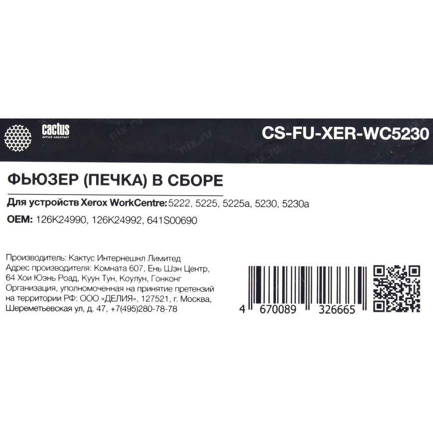 Этот фьюзер выпущен не производителем печатающего устройства, а независимым производителем расходных материалов. Характеристики данного фьюзера могут уступать характеристикам оригинальных фьюзеров.