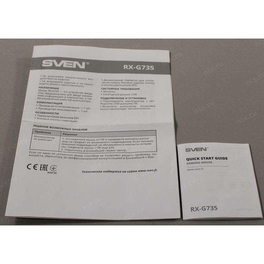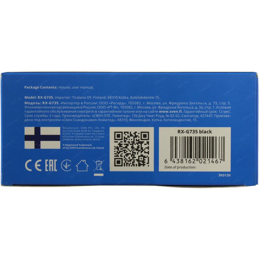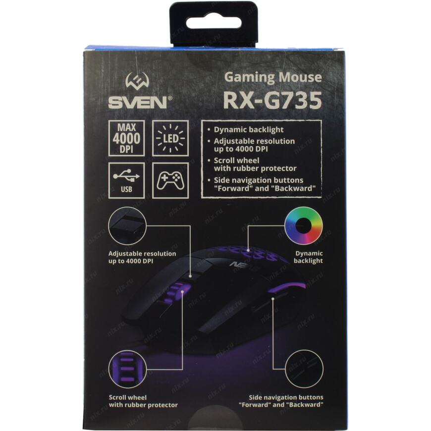 Проводная Мышь SVEN Optical Mouse RX-G735 Black (USB 2.0, 6btn, 4000 dpi)