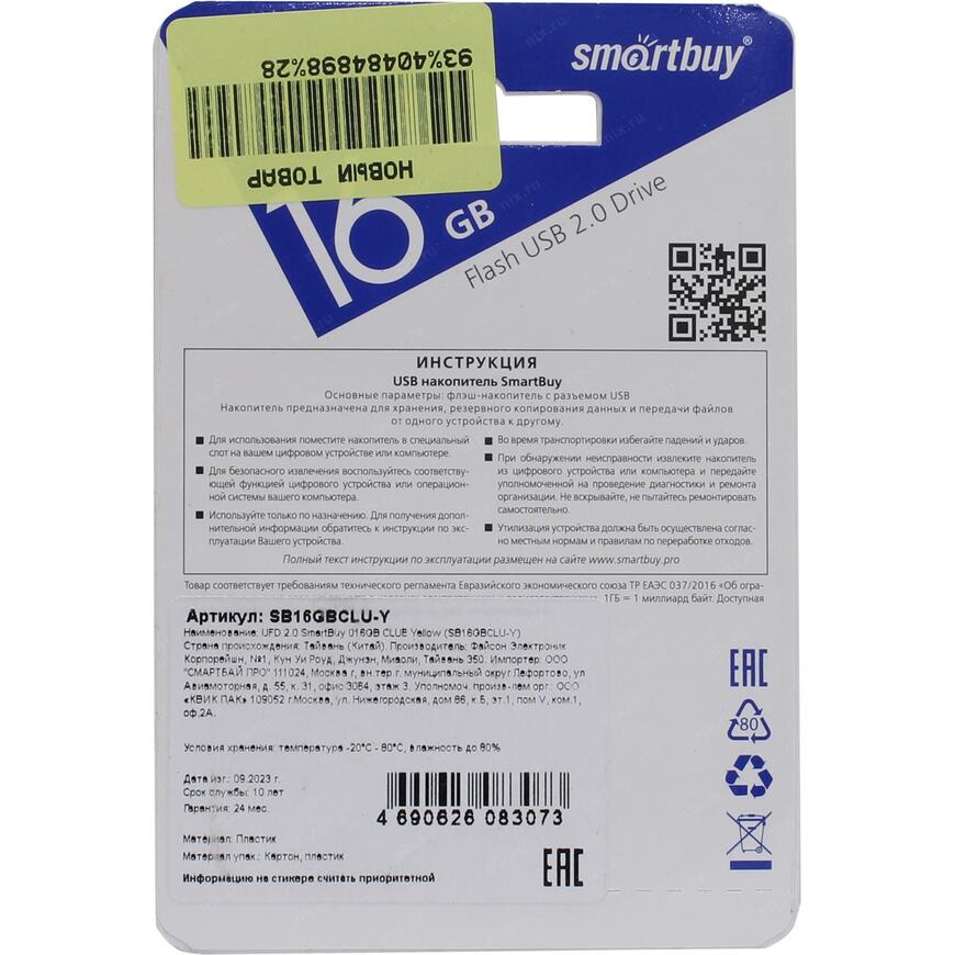 Флешка SmartBuy Clue SB16GBCLU-Y USB 16 ГБ