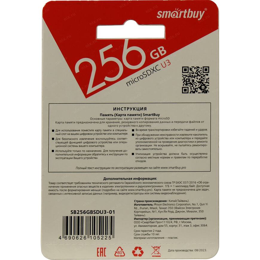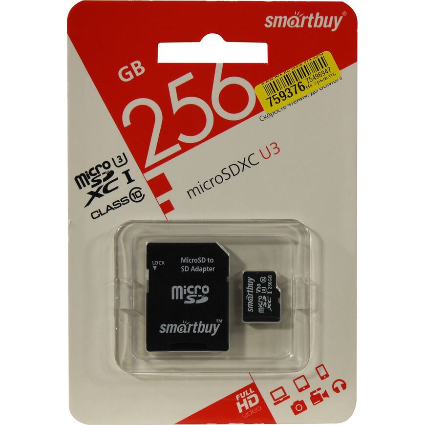 Карта памяти SmartBuy Professional SB256GBSDU3-01 microSDXC V30, UHS-I Class 3 (U3), Class 10 256 ГБ +microSD->SD адаптер