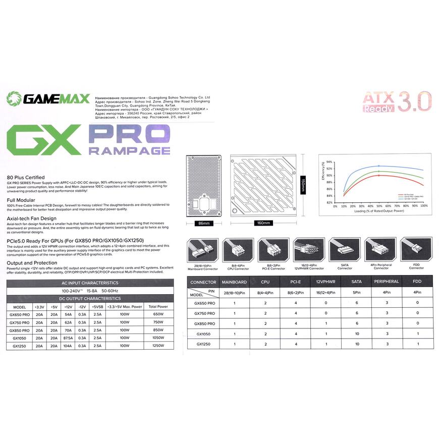 | Особенности блока питания |