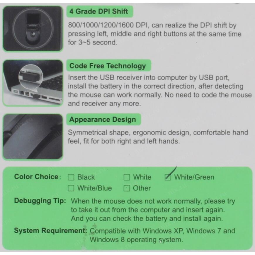 | Комплект поставки | 1 батарейка типа AA, USB-приемник |