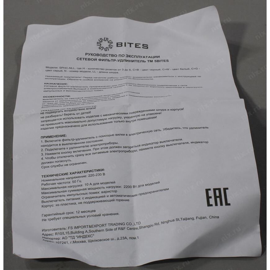 Вес брутто (измерено в НИКСе)