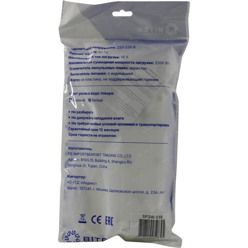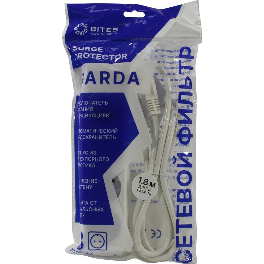 Сетевой фильтр 2.2 кВт 5bites SP3W-518 3 розетки евростандарт с заземлением 1.8 метра