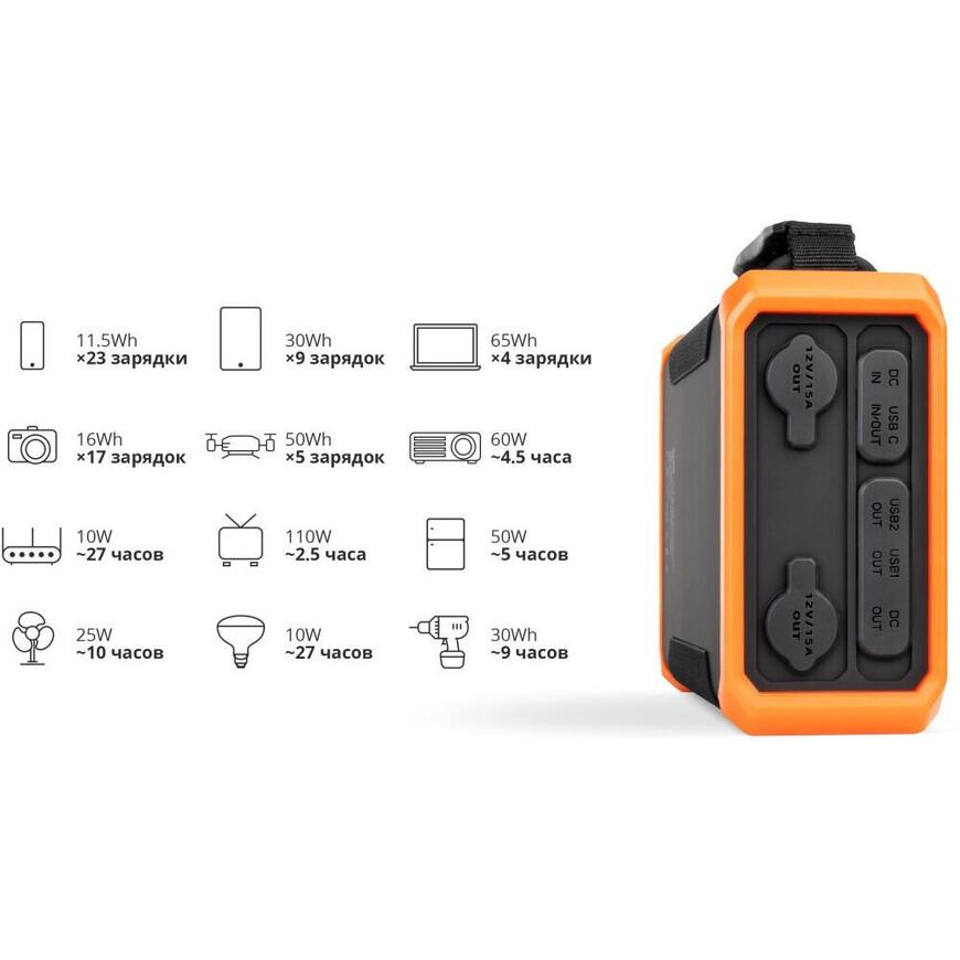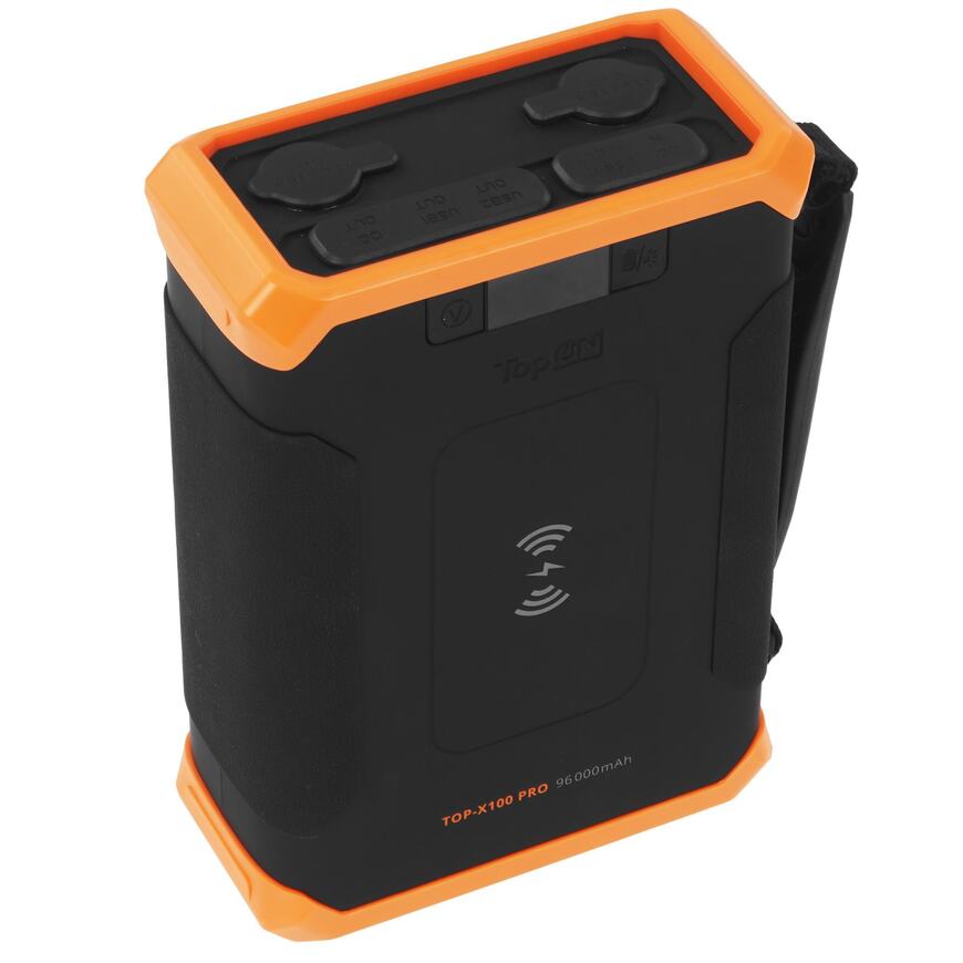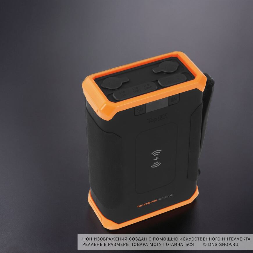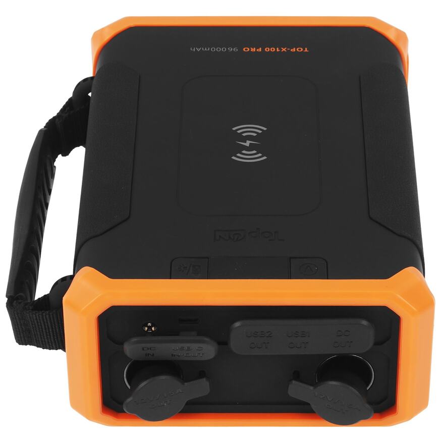 TOP-X100 PRO имеет DC порт 84W с широким диапазоном выходных напряжений, 2 автомобильные розетки 180W, порт USB Type-C PD 60W, 2 дополнительных USB 18W QC3.0 и модуль беспроводной зарядки Qi 10W, что обеспечивает поддержку питания автомобильных холодильников, пылесосов и термосов, электрических насосов, портативных вентиляторов, наружного освещения и освещения для охоты и рыбалки, GPS-навигаторов, раций и металлоискателей, ноутбуков, планшетов, смартфонов, электронных книг, аккумуляторов для РУ-моделей, квадрокоптеров, дронов, электроинструмента, фото/видео камер и другой техники.