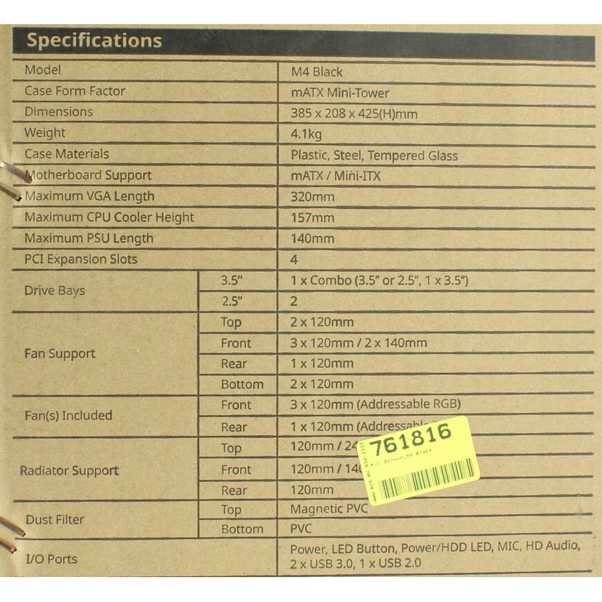 4 вентилятора: 120 x 120 мм (3 на передней и 1 на задней панели)