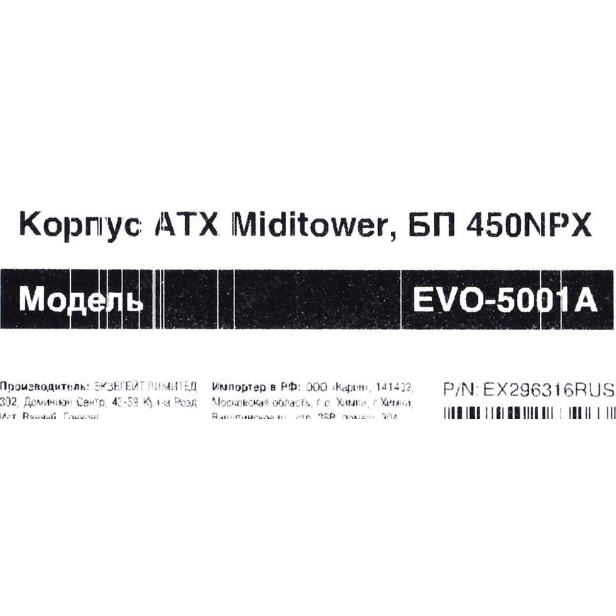 Корпус ExeGate EVO-5001A 450W Black - это стильный и функциональный Midi-Tower корпус, который станет отличным выбором для сборки мощной игровой или офисной системы. Этот корпус обеспечит надежную защиту вашего оборудования и позволит создать эффективную систему охлаждения благодаря своей удобной конструкции и хорошей вентиляции.