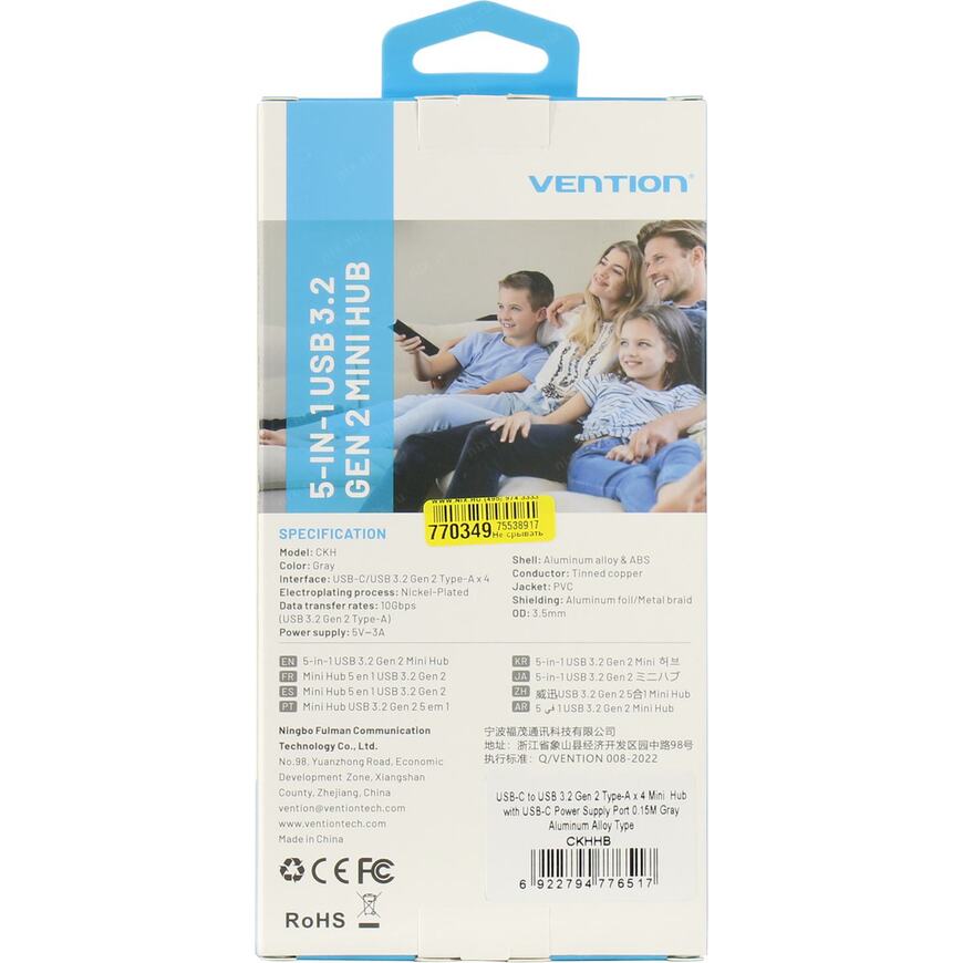 4-портовый USB 3.2 Gen2 концентратор с входом питания Power delivery.