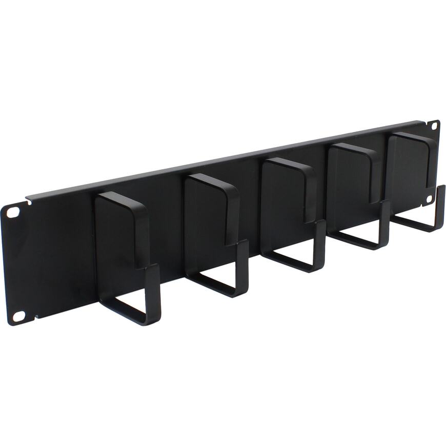 Органайзер кабельный горизонтальный 19" 2U, 5 колец. Применяется для укладки избытка длины коммутационных шнуров, что позволяет упорядочить размещение шнуров, избежать образования петель, а также обеспечить хорошую видимость элементов маркировки