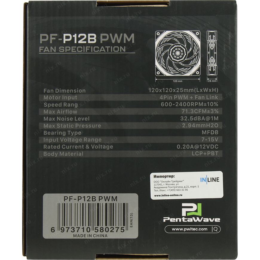 Вентилятор PentaWave PF-P12B PWM / 120mm 4 pin Magnetic FDB 500-2400rpm 75CFM 34.6dBA/ Black
