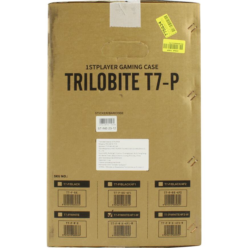 1STPLAYER TRILOBITE T7-P White имеет внутренние отсеки для установки жестких дисков размером 2.5" и 3.5", что обеспечивает достаточно места для хранения данных и удобство при сборке системы. Количество слотов расширения - 7, что позволяет установить большинство современных видеокарт и другие компоненты.