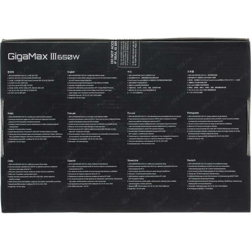| Особенности блока питания |