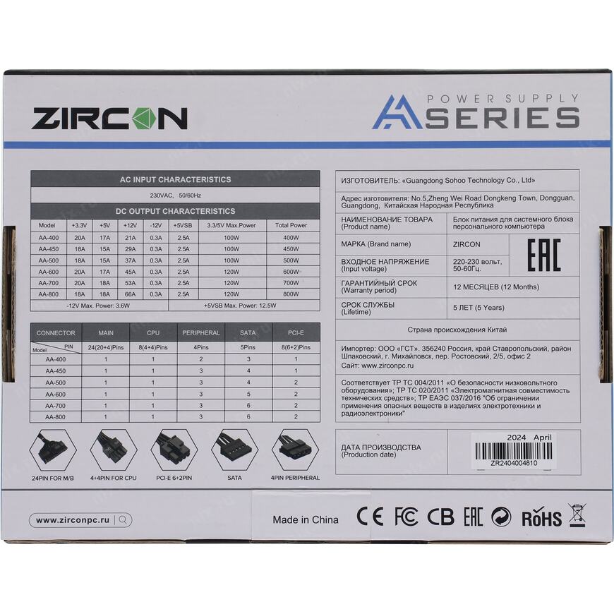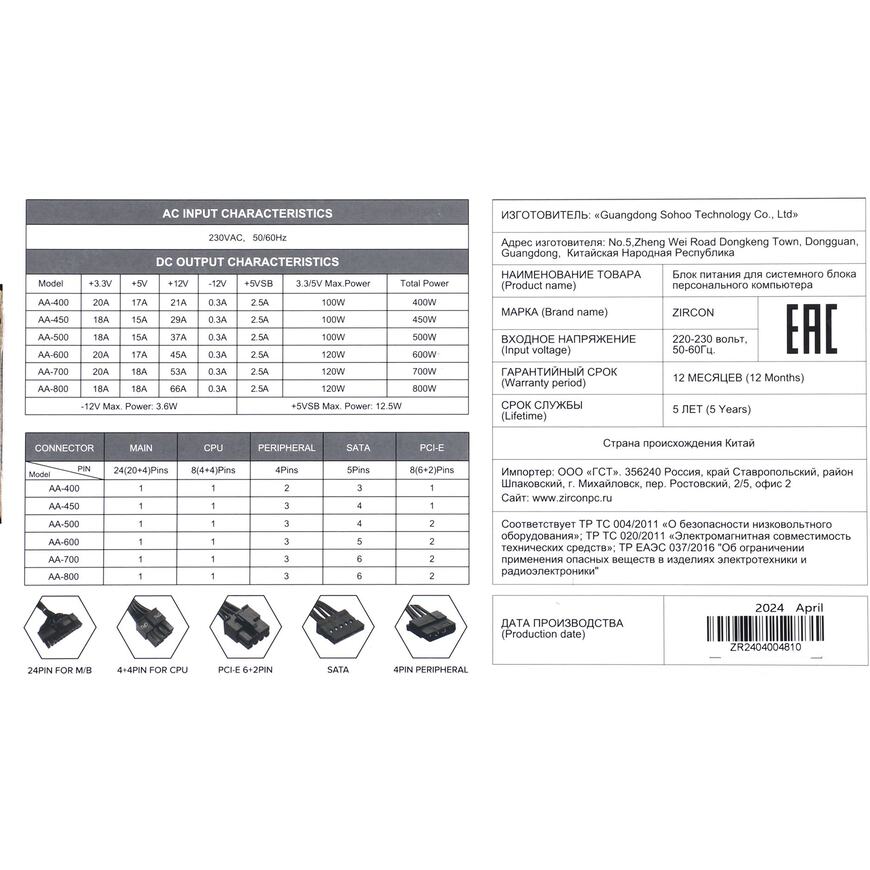 +3.3V - 18A, +5V - 15A, +12V - 37A, +5VSB - 2.5A, -12V - 0.3A; Комбинированная нагрузка: +3.3V&+5V - 100 Вт