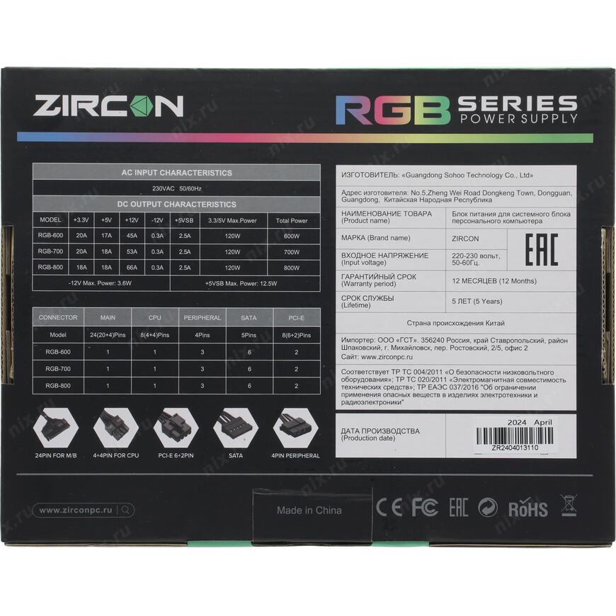 24+8 pin, 24+4 pin, 20+4 pin (разборный 24-pin коннектор. 4-pin могут отстегиваться в случае необходимости, разборный 8-pin коннектор)