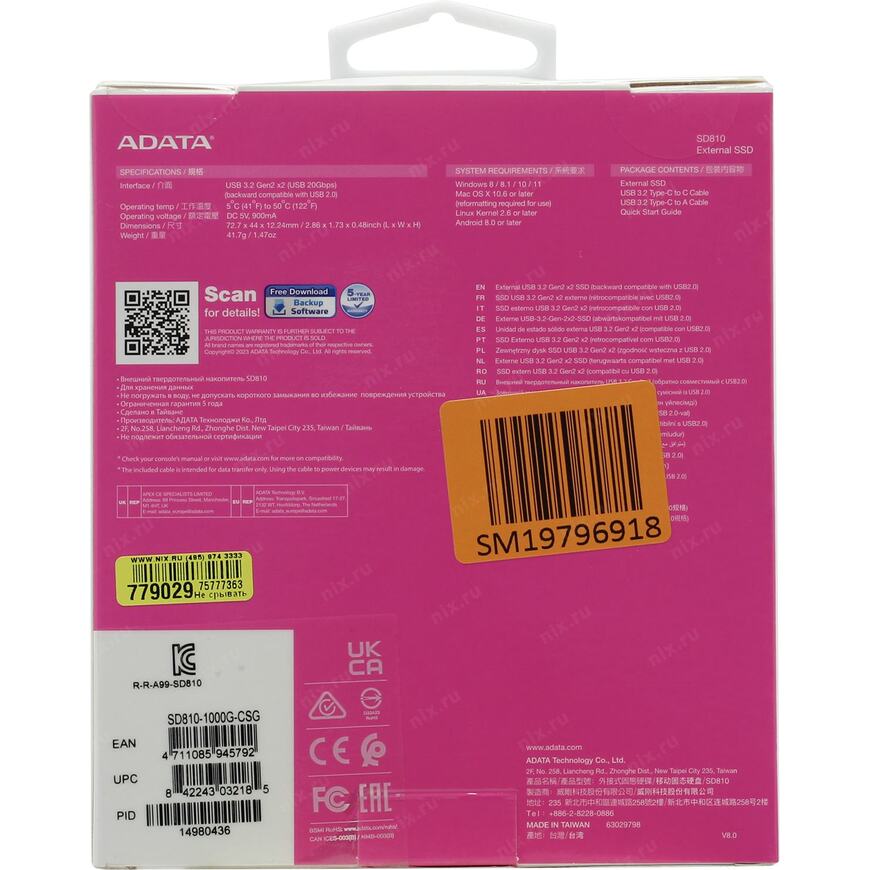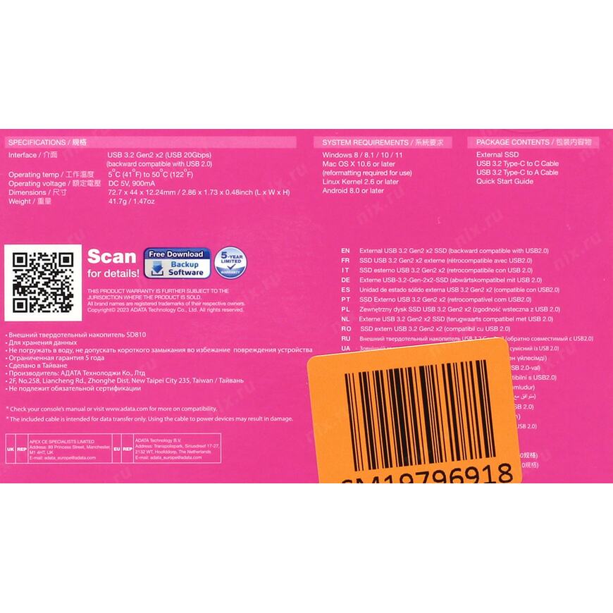 Диск SD700 - это один из первых внешних SSD-дисков с защитой от попадания воды и пыли класса IP68 и долгим сроком эксплуатации, который оснащен флэш-памятью 3D NAND. Он включает в себя комбинацию инновационных характеристик и технологий, что обеспечивает высокую производительность, длительную работу и удобство использования, где бы вы не находились. Прочный корпус, военный класс ударопрочности - и при всем этом скорость чтения и записи данных в четыре раза больше, чем во внешних HDD-дисках (механических) - 440 МБ/с. Диск SD700 является кросс-платформенным и совместим с ОС Windows, Mac и Android для простой передачи данных. Диск практически ничего не весит (всего 75 г!), тихо работает, не нагревается и не расходует много энергии.