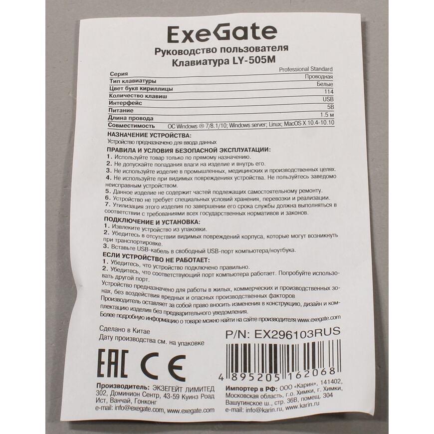 | Длина кабеля клавиатуры |