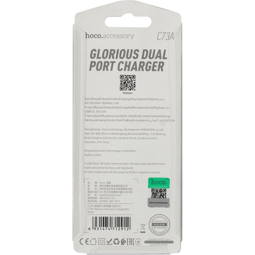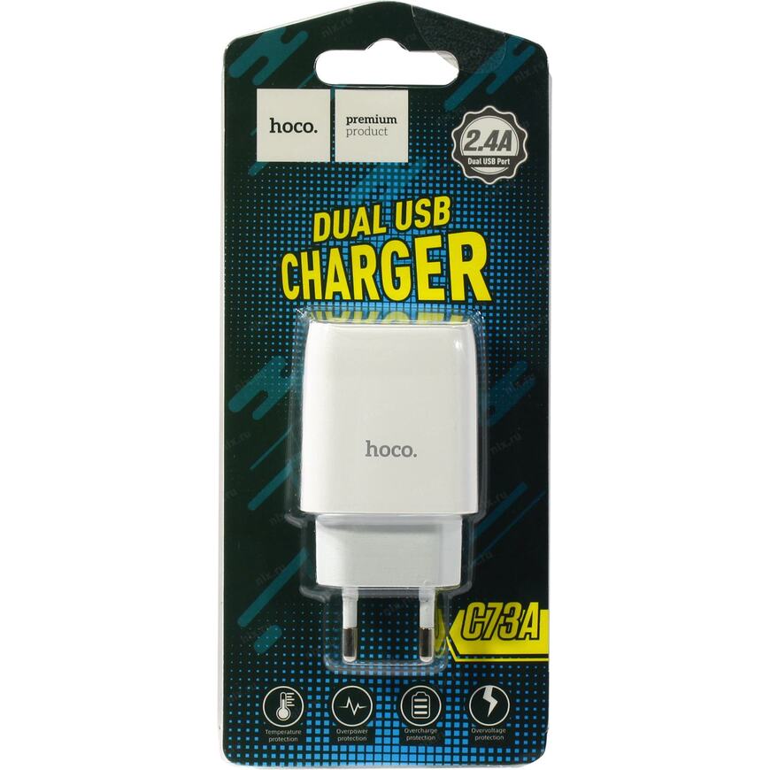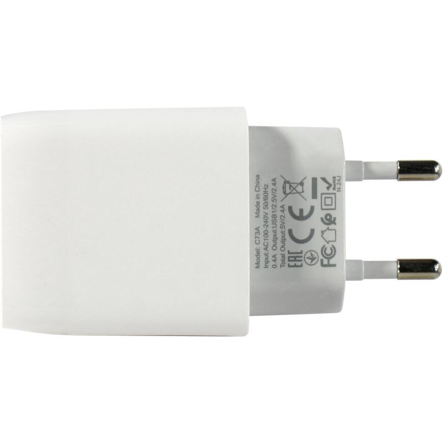 Универсальный адаптер, позволяющий осуществлять питание двух USB устройств от электросети. Подходит для зарядки мобильных телефонов, смартфонов, а также любых других устройств с возможностью зарядки по USB (5В / до 2.4А)