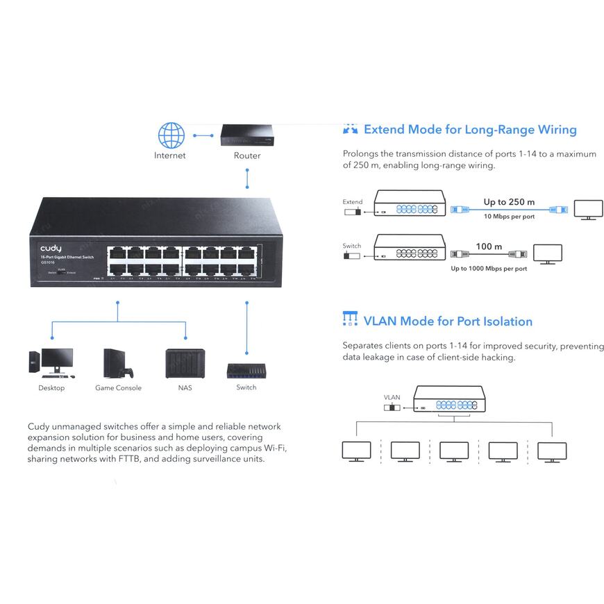 Cudy GS1016 - это отличный баланс цены, производительности и функциональности. Он подходит для тех, кто ищет надежное и простое в настройке решение для построения эффективной локальной сети. Благодаря высокой скорости передачи данных, поддержке современных технологий и удобству управления, этот коммутатор станет отличным выбором как для небольших офисов, так и для более крупных сетевых инфраструктур.