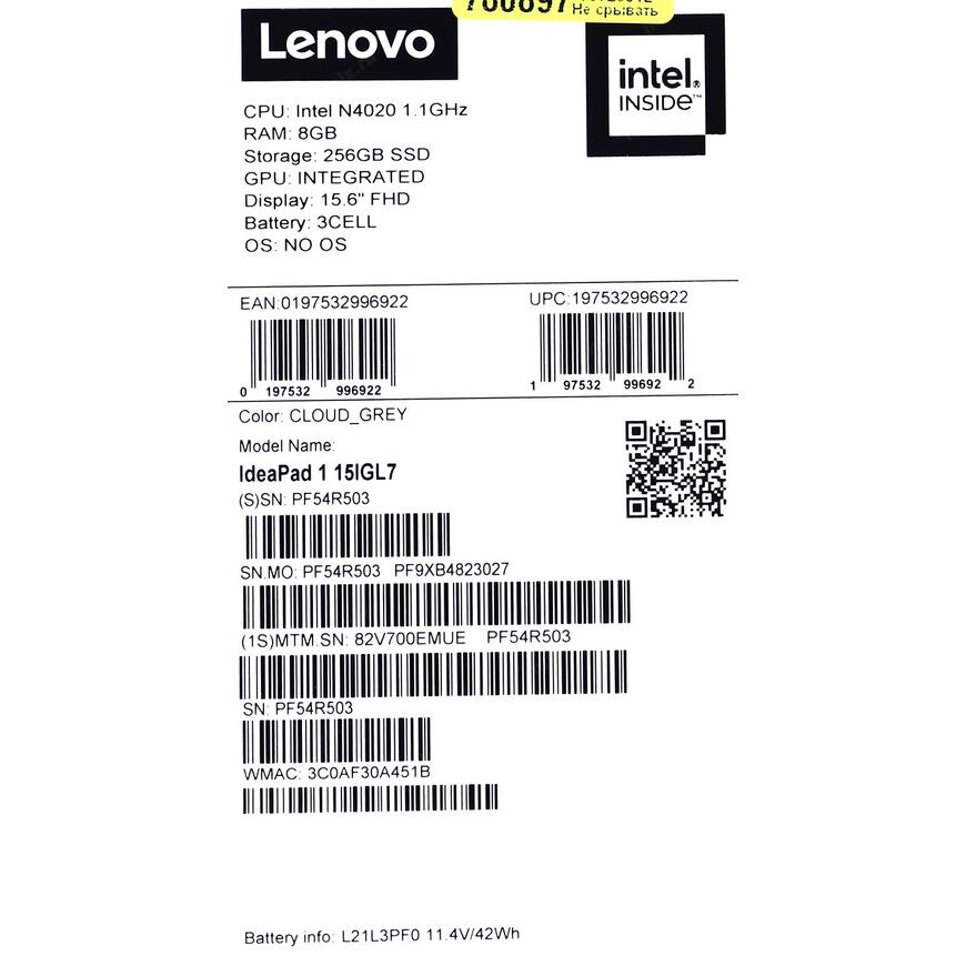 Ноутбук Lenovo IdeaPad 1 15IGL7 <82V700EMUE>