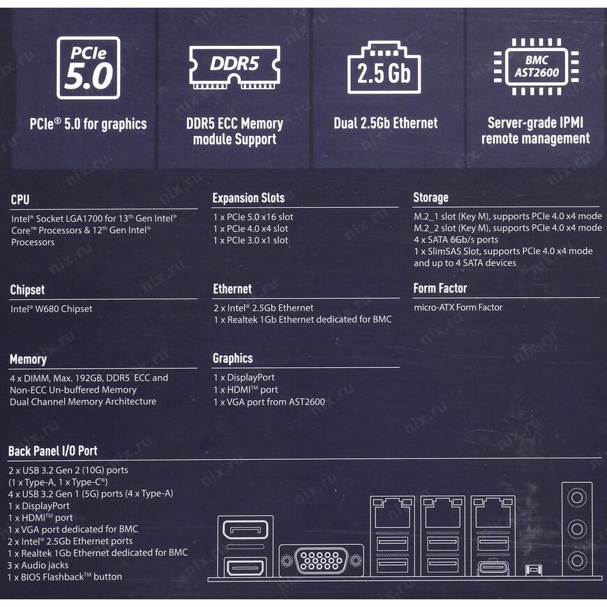 2 разъема M Key PCI-E 4.0 x4 с поддержкой карт Type 2242/2260/2280 (длиной до 80 мм).