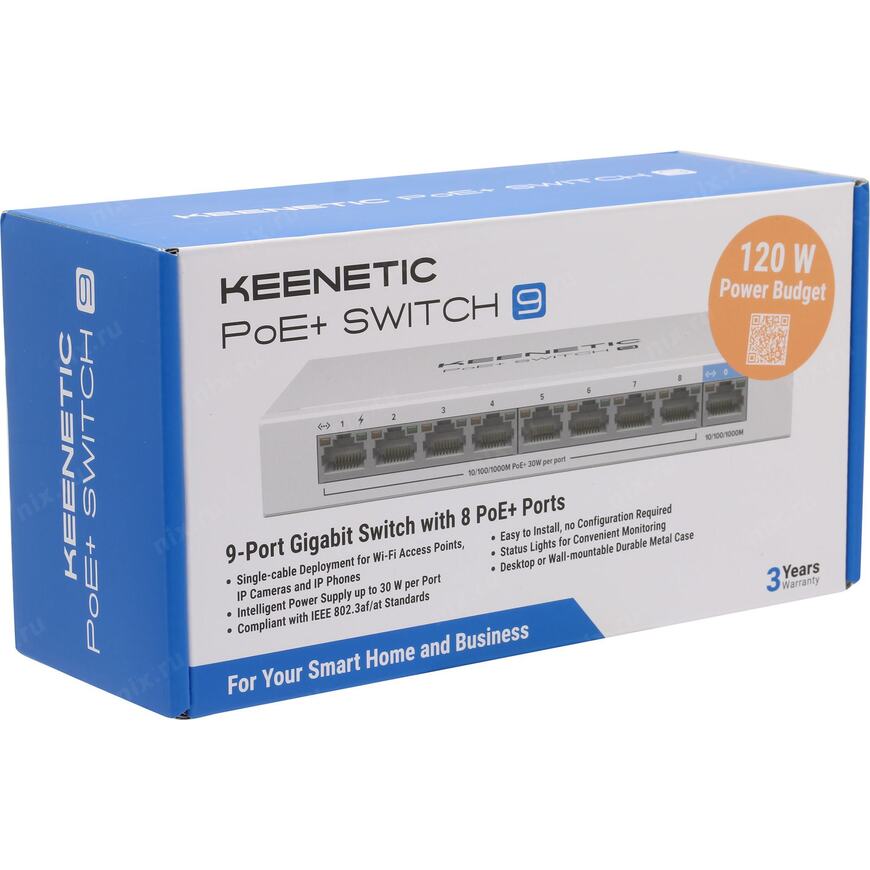 9 портов 10/100/1000 Мбит/сек, 8 из них PoE PSE